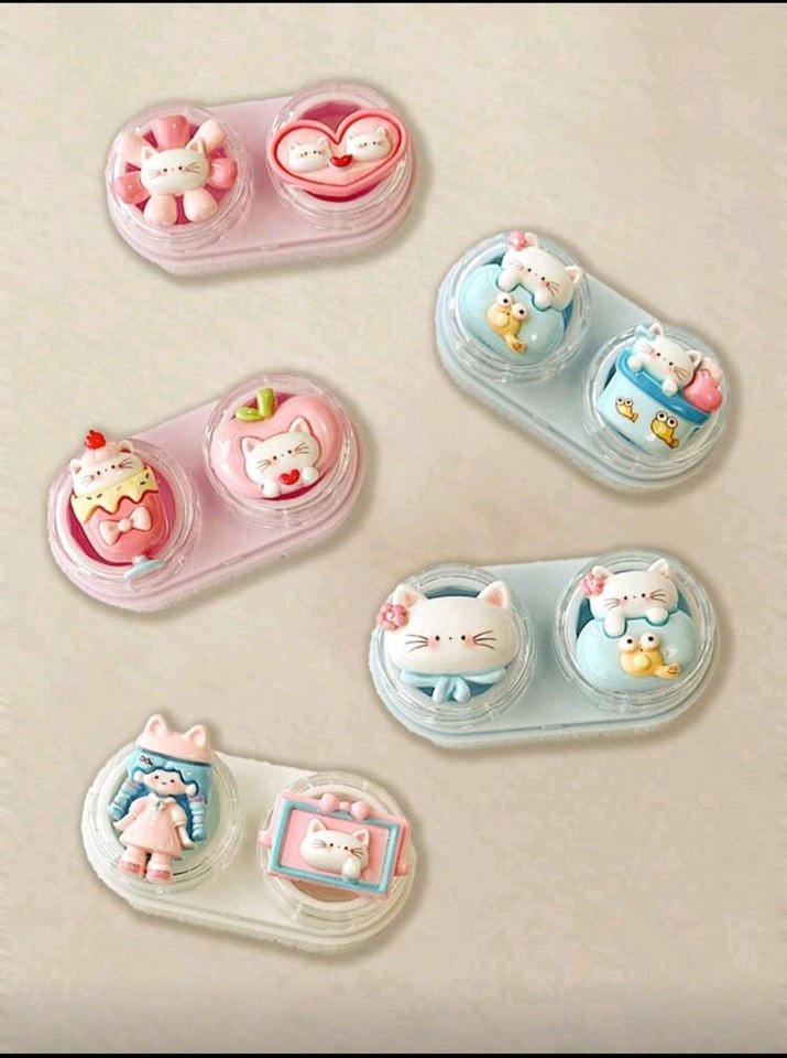 Pastel renklerde, sevimli kedi figürlü çeşitli kedi aksesuarları içeren set