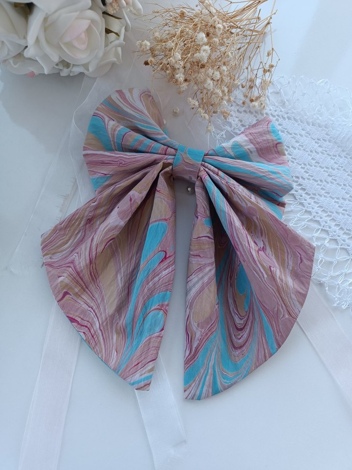 Renkli Pastel Kumaş Fiyonk gerçek Ebru Saç Aksesuarı