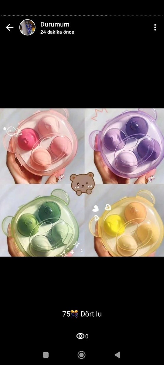 Şeffaf ayı şeklinde kutularda saklanan, çok renkli pastel tonlarda makyaj süngerleri seti. Pürüzsüz uygulama için uygundur.
