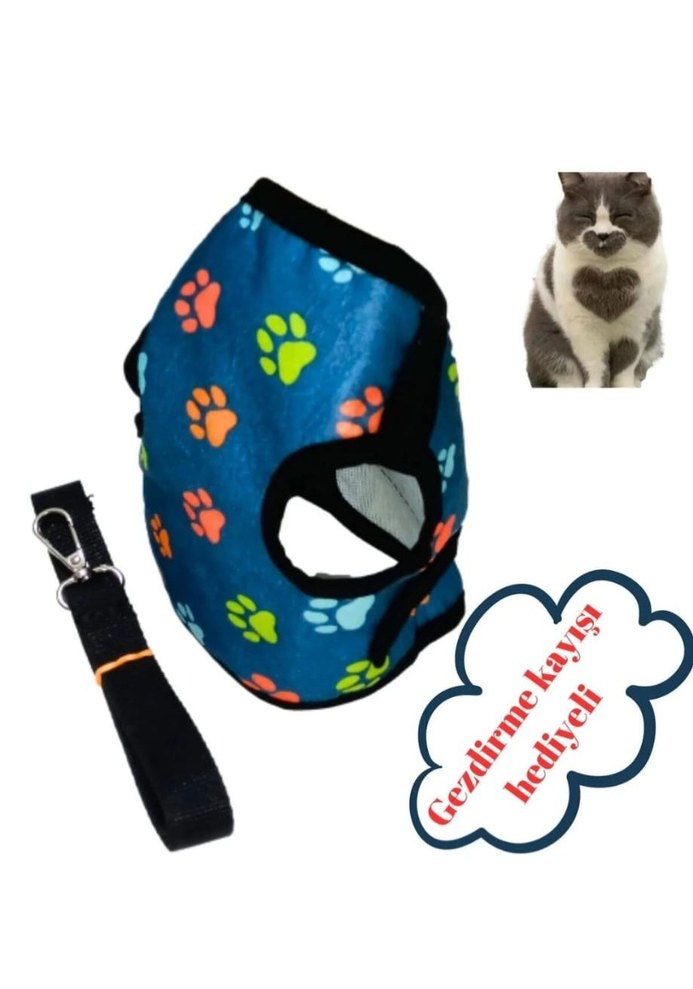 Mavi renkli pati detaylı kedi göğüs tasması,hem giysi hem gezdirmek için kullanılabilir, gezdirme kayışı yanında verilecektir, küçük dostumuzun boy ve kilosuna göre uygun beden belirtmeniz yeterlidir