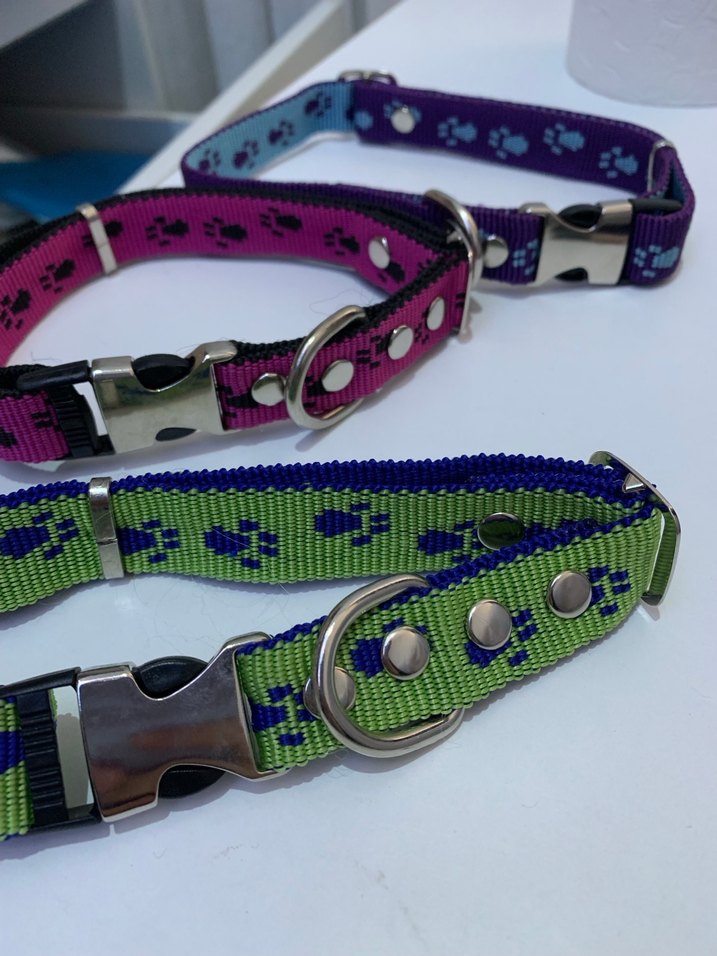 Ayarlanabilir kayışlı ve sağlam metal tokalı, paw desenli renkli köpek tasması. Yavru köpekler için 5 tane almıştım ama büyük geldi anne köpeğe de büyük geldi cinsi toy poodle, tasmalar orta ve büyük ırka uygun hiç kullanılmadı başka hayvan kokusu vs yok yani zaten denediklerimi satışa koymadım hayvanların başından düştü kayboldular,içleri ve dışları farklı renkte boyu ayarlanabiliyor adet 80tl
