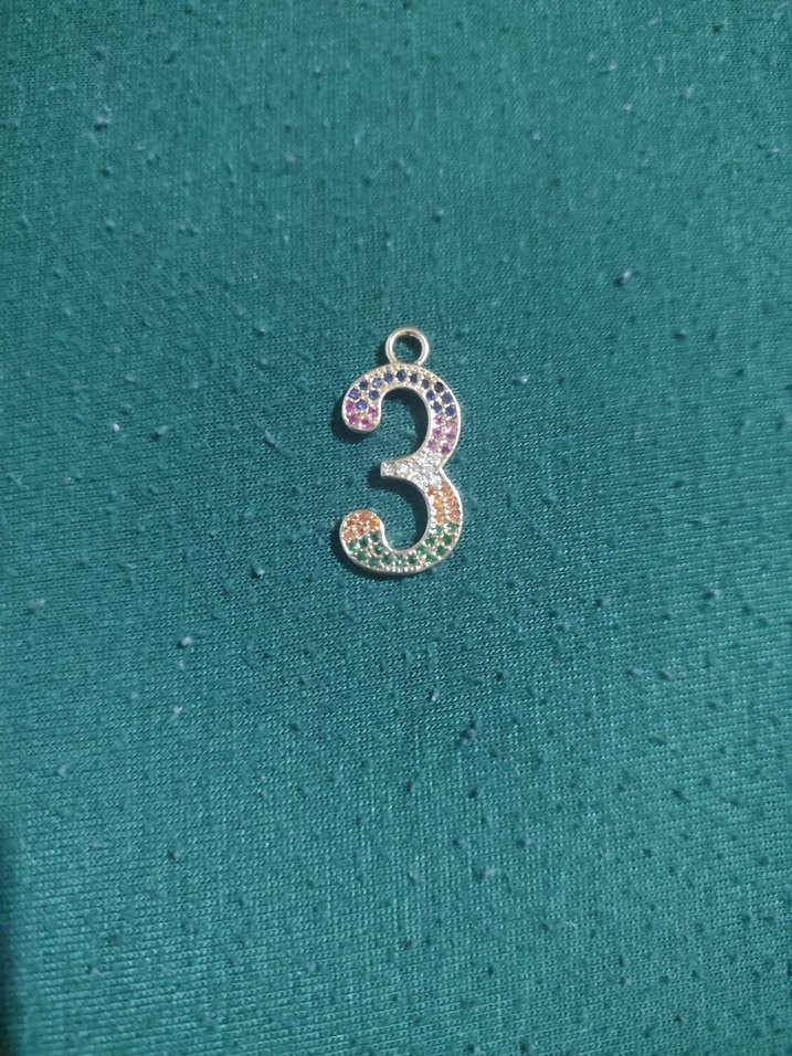 Payetlerle süslenmiş, 3 numara şeklinde renkli kadın charm. Günlük kullanım için bohem ve minimal tarzda. ✨