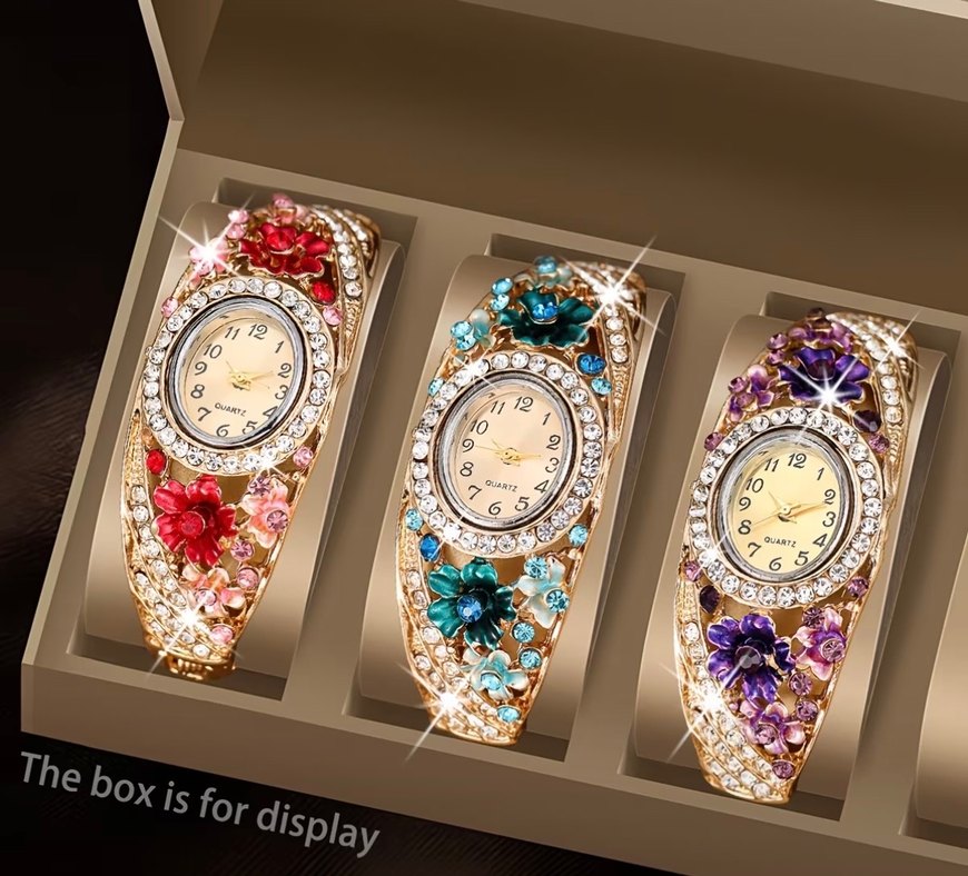 Kadınlar için renkli bohem tarzda, payetli çiçek desenleri ve taşlarla süslenmiş, kuvars mekanizmalı şık saat. ⌚ kırmızı renk için ilandır
