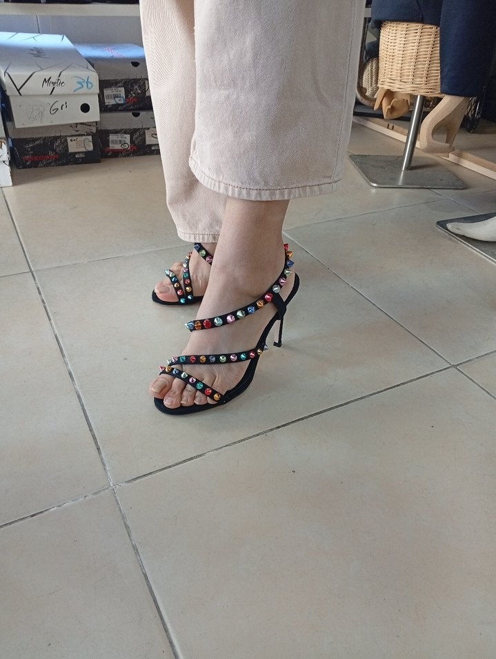 Kadınlar için ince topuklu, renkli payet detaylı ayakkabılar. Parti için uygun, lastik tabanlı ve sokak tarzı ile şık bir görünüm sunar.
