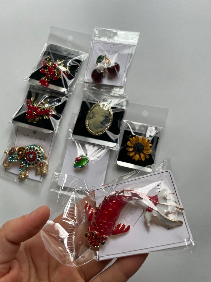 Renkli ve payetli, nakışlı bohem tarzda kadın broş seti. Parti için şık ve avant-garde bir dokunuş sağlar. ✨