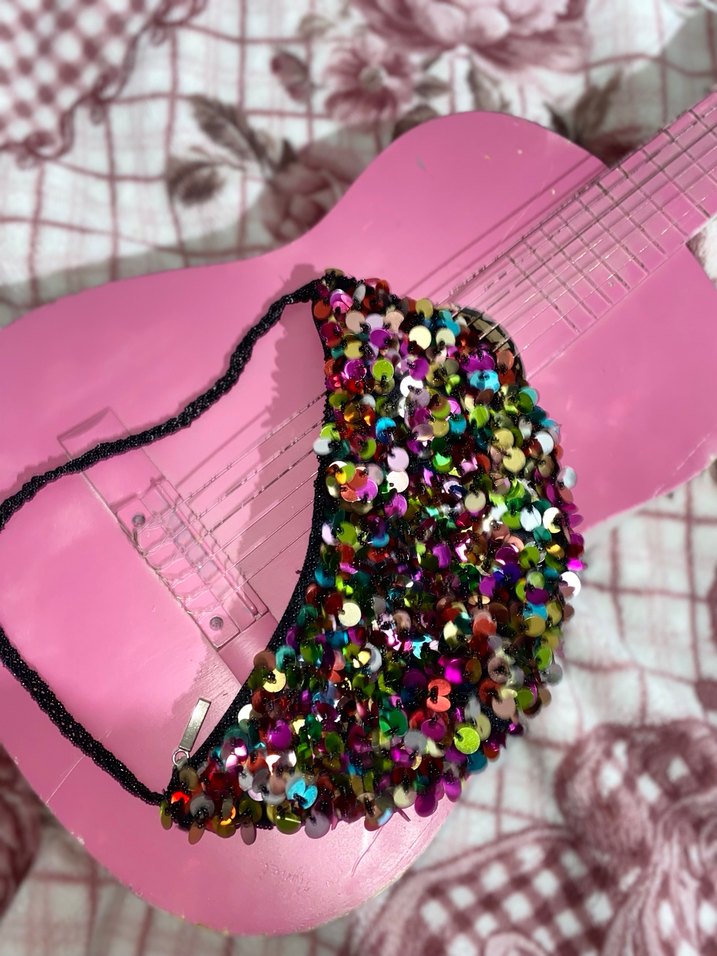 Renkli payetler ve nakış detaylarıyla sentetik kumaştan kadın çanta, parti için uygun. Glamour, bohem ve retro tarzı yansıtıyor. 4. resimde belirttim bi köşesinde pulları eksiktir
