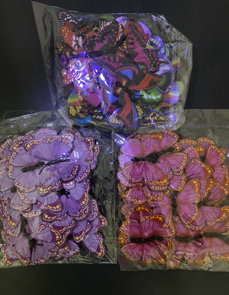 Renkli Payetli Kelebek paket içeriği 50 adet
