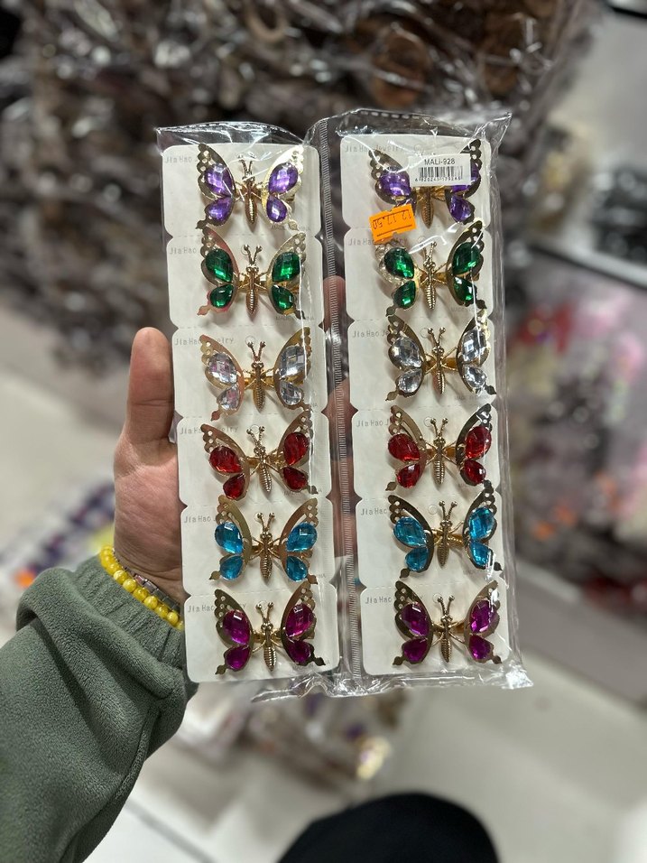 Bu set, payetli detaylara sahip renkli kelebek saç tokalarını içerir. Plastik malzemeden yapılmıştır ve bohem vintage tarzına uygundur.
