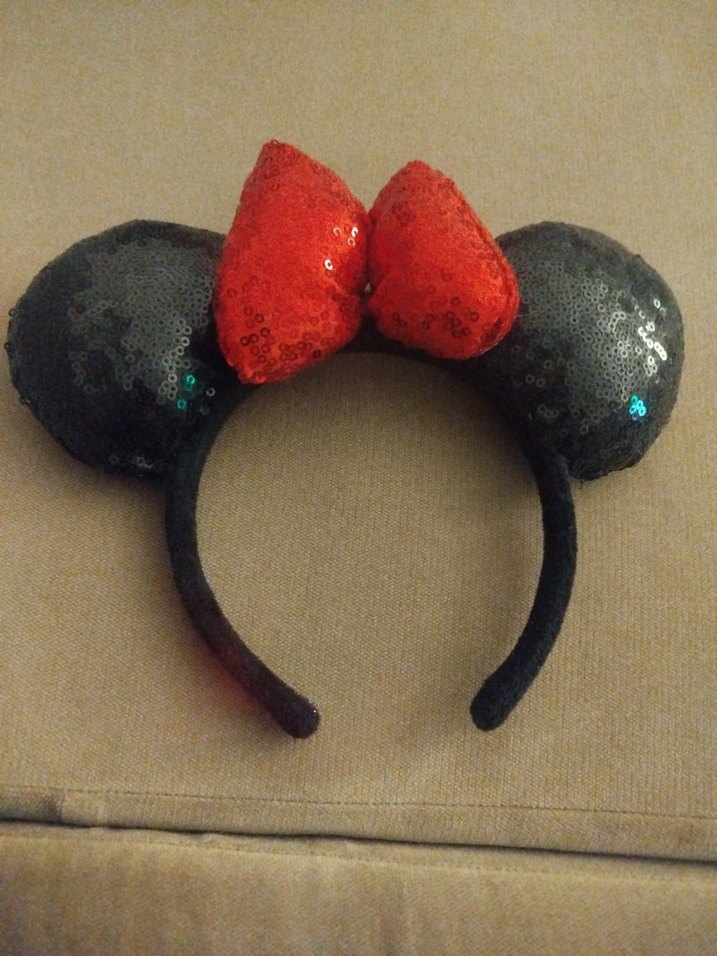 Renkli payetli kulaklar ve büyük kırmızı payetli fiyonk detaylı, pop kültür ve rock punk tarzında kız çocuk saç bandı.