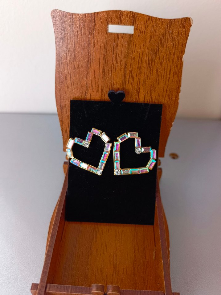 Renkli Payetli Mini Kalp Küpeler