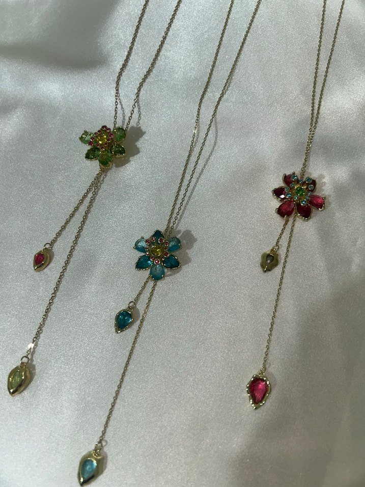 Uzun, renkli bohem çiçek desenli ve payet detaylı kolyeler, günlük kullanım için uygundur.