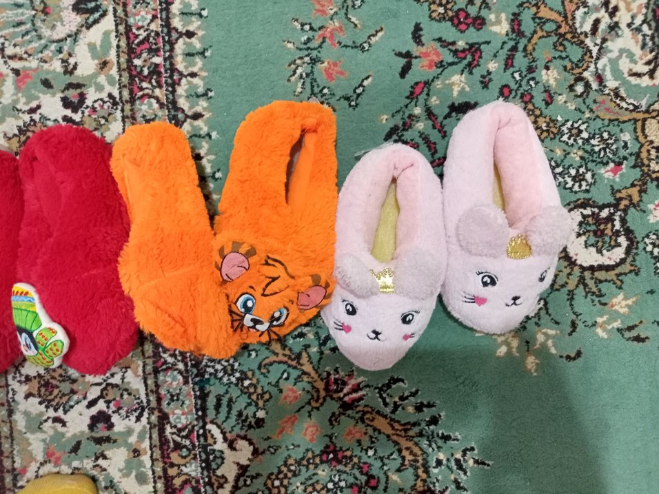 Yumuşak peluş detaylı, renkli ve hayvan figürlü kız çocuk ev terlikleri, rahat ve eğlenceli bir stil için uygundur.