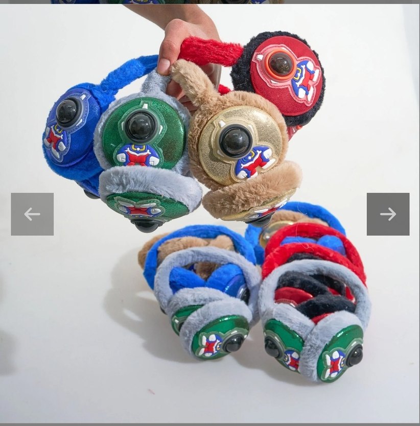 Yumuşak dokulu, renkli ve eğlenceli rozet detaylı peluş kulaklıklar.