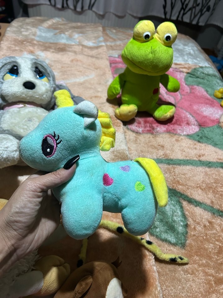 Yumuşak kumaştan yapılmış, kalp desenli renkli peluş oyuncak attır.