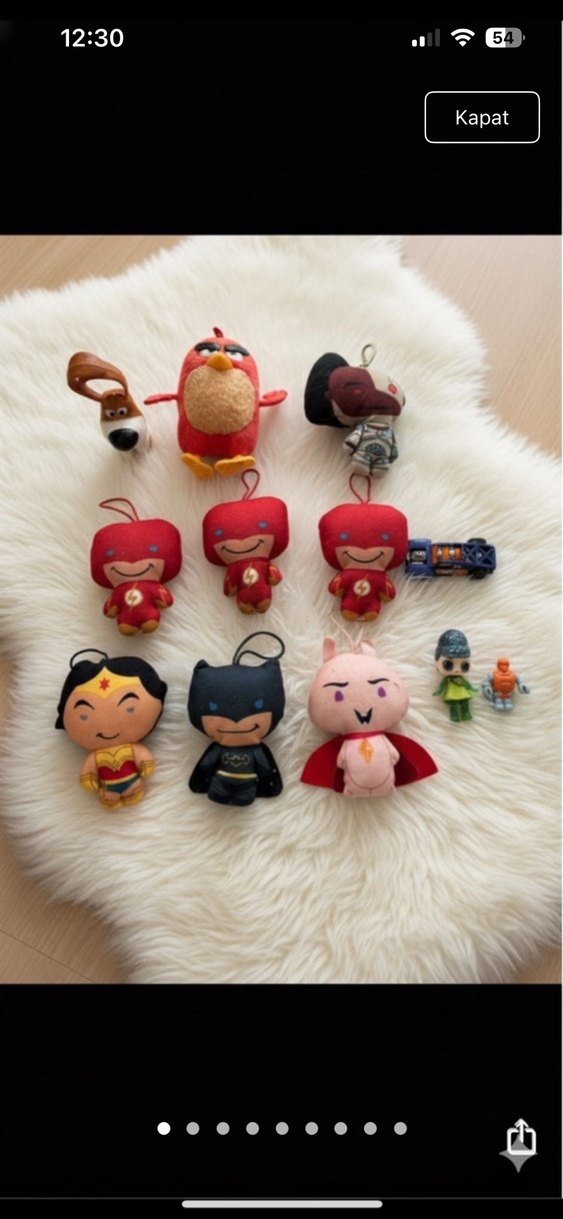 McDonald’s, Burger King figür peluş oyuncaklar, Dc karakterleri. Angry Birds, Lol bebek ve Hot Wheels araba Erikenstein Rod(2019) model araba 55. yıl özel seri. Hepsini birlikte satıyorum. #hotwheels #figür #oyuncak #dc #marvel #lol Çeşitli karakterlerden oluşan, canlı renklerde ve küçük askı halkalarına sahip aksiyon figürleri s