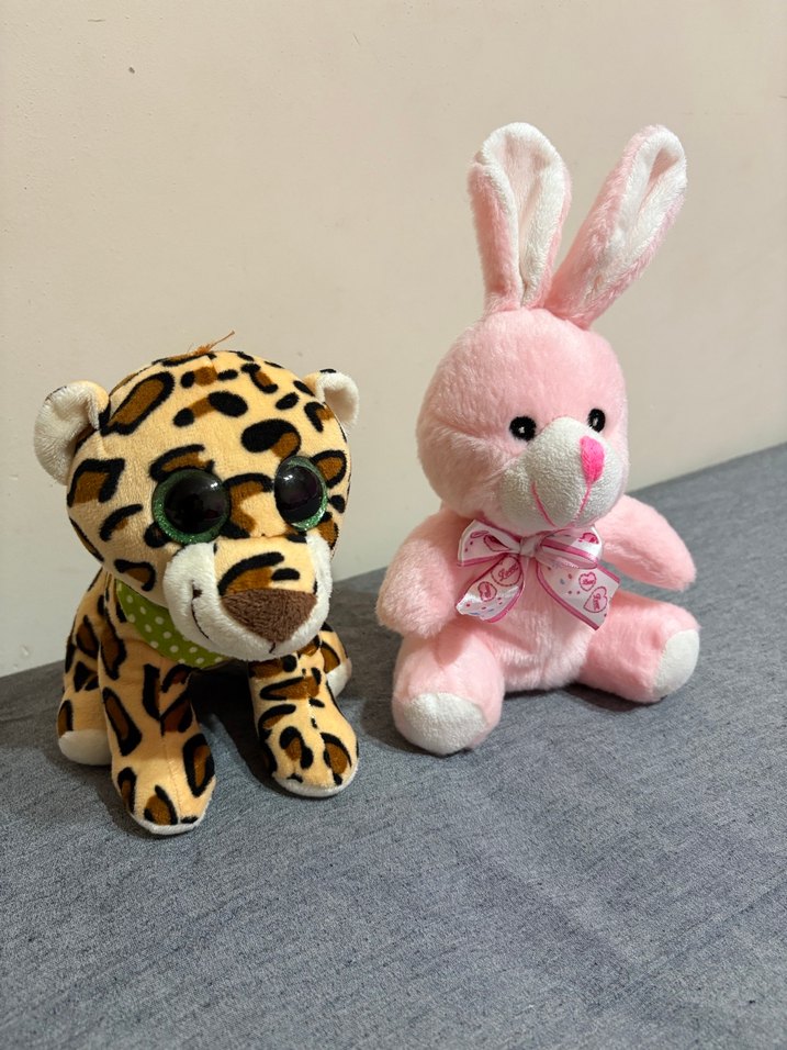 Renkli Peluş Oyuncaklar - Pembe Tavşan ve Leopar