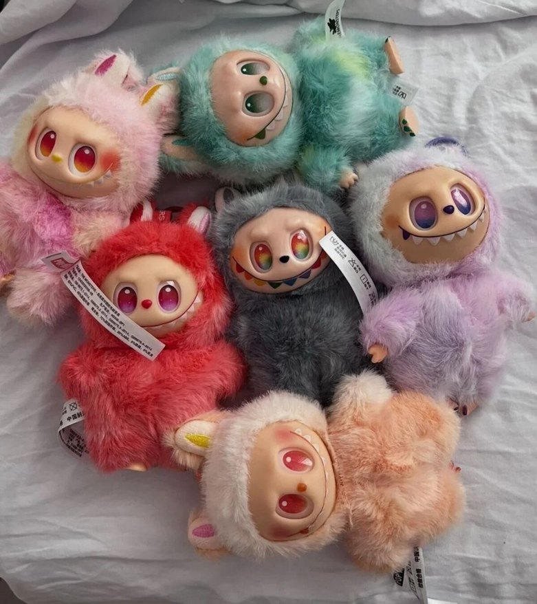 Yumuşak kürklü, renkli ve farklı yüz ifadelerine sahip peluş oyuncaklar seti. Pastel ve canlı tonlarda çeşitlilik sunar.