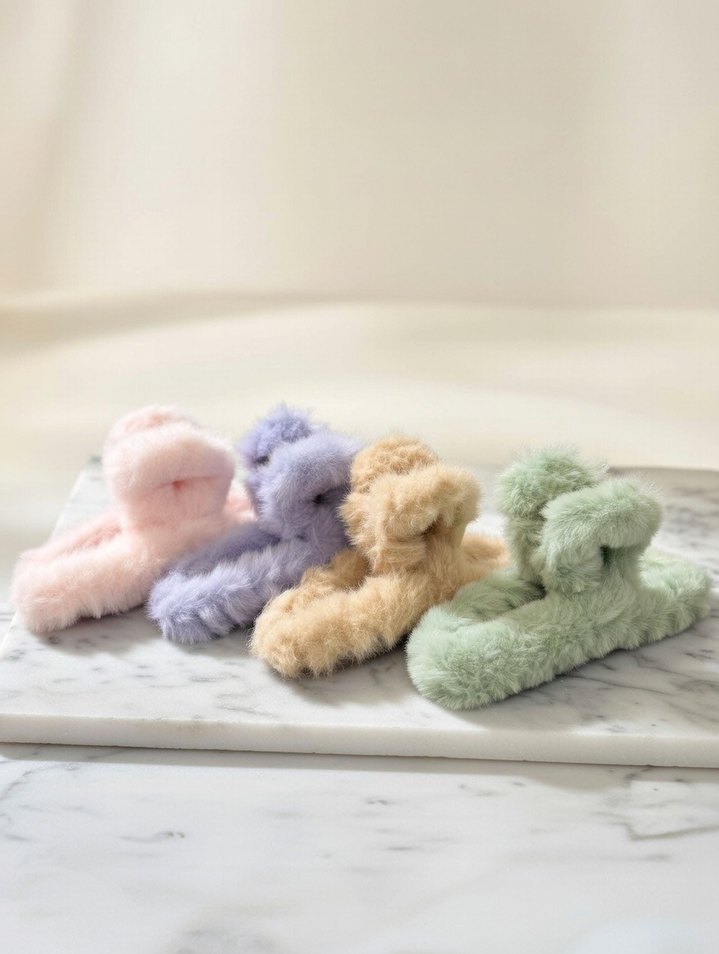 için pastel tonlarda, kürk detaylı, yumuşak ve sıcak peluş toka Bohem tarzıyla dikkat çeker.