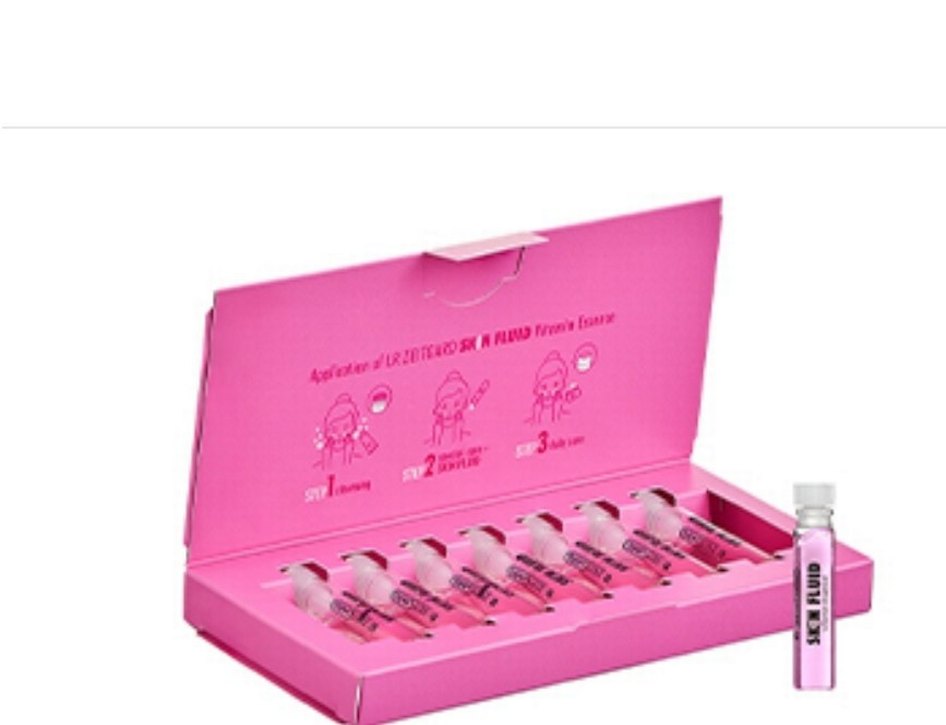 Üç adımlı kolay uygulama ile cildi besleyen ve koruyan renkli pembe cilt bakım ampulleri seti.