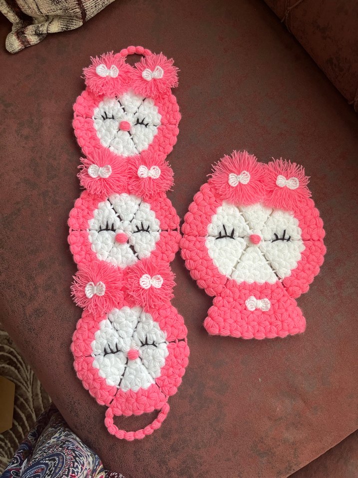 Gülümseyen yüz ve fiyonk detaylı, renkli pembe banyo süngerleri, nazik temizlik için uygundur.