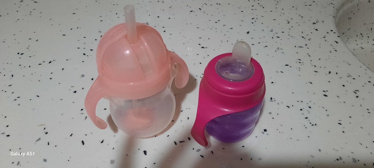 Kullanımı kolay saplı ve yumuşak uçlu, pembe tonlarında renkli iki bebek biberonu. Bebekler için uygundur. ikisi beraber satiliktir temizdir durduğu için toplanmıştır saglamdir