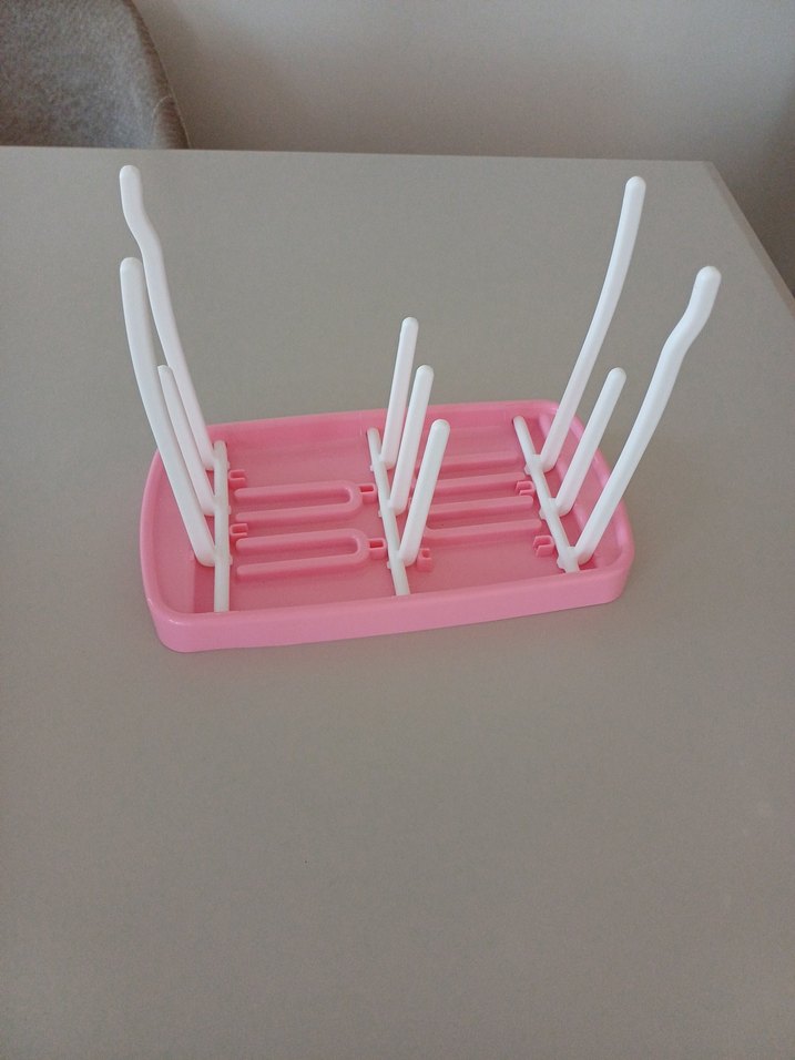 Renkli pembe bıçak ve çatal tutucu, beyaz ayaklarıyla çatal, bıçak ve kaşıkları düzenli tutar. Gereçleri dik ve ayrık şekilde yerleştirir. sayili kullanıldı