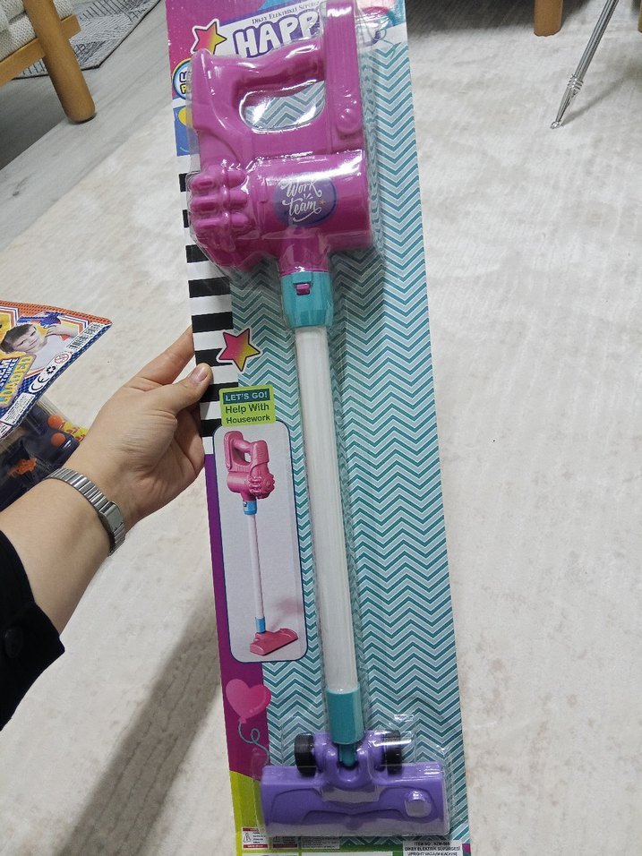 Renkli Pembe Çocuk Elektrikli Süpürge Oyuncak - Görsel 1