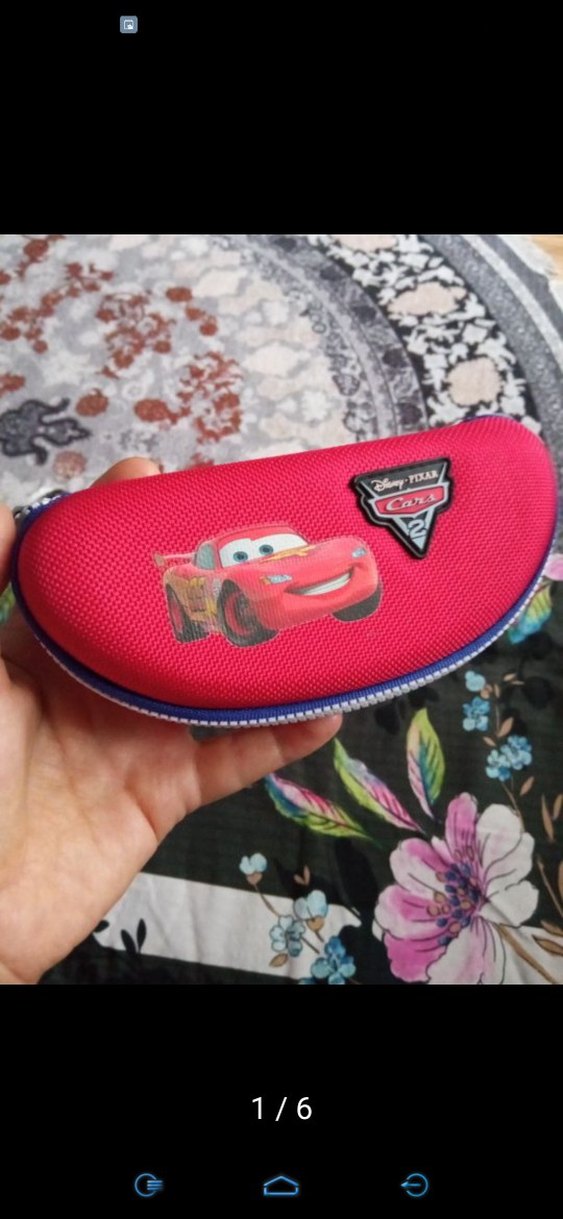 Disney Cars desenli, renkli pembe çocuk gözlük kutusu, birkez kullanıldı