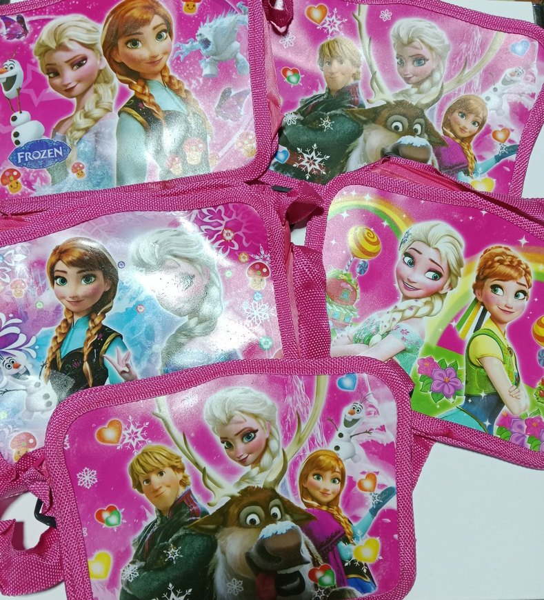 Renkli ve pembe çocuk okul çantası, popüler animasyon karakterleriyle süslenmiş, çocuklar için eğlenceli ve çekici. eni 20 , boyu 15 cm.. askılı.. adet fiyatıdır..