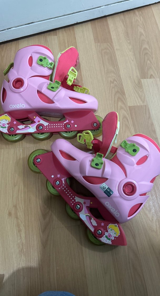 Ayarlanabilir kayışlar ve tekerleklerle renkli pembe çocuk patenleri, rahatlık ve eğlence sağlar. Birkaç sene önce Decathlondan alındı markası oxelo. Sadece birkaç kez giyildi.34-36 beden için uygun. Bedeni olmadığı için satılıyor. Umarım yeni sahibine iyi gelir