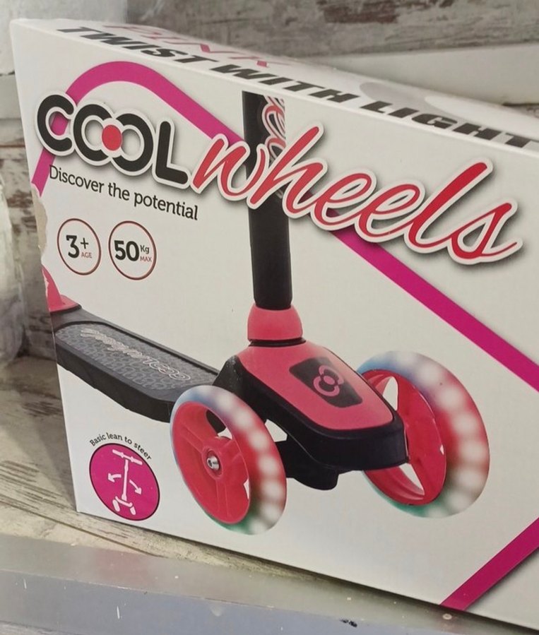 3 yaş ve üzeri çocuklar için renkli pembe scooter, 50 kg taşıma kapasitesine sahiptir. Üç tekerlekli yapısıyla denge sağlar
