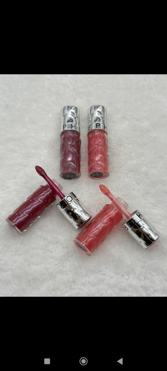 Canlı pembe renklerde, parlak ve kolay sürülen iki dudak parlatıcısı seti.