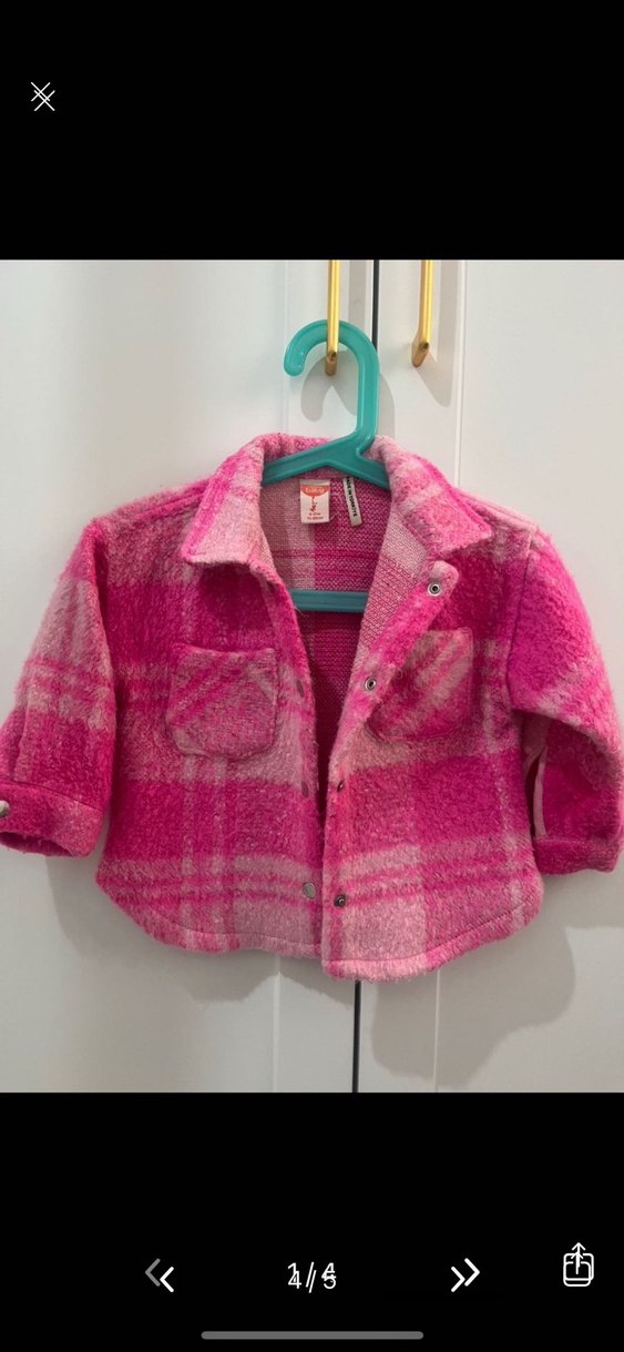 Renkli pembe tie-dye desenli kız gömlek, notalı yaka ve uzun kolludur. Bol kesim ve yumuşak, sıcak kumaştan üretilmiştir. Önü düğmeli ve göğüs cebine sahiptir.
