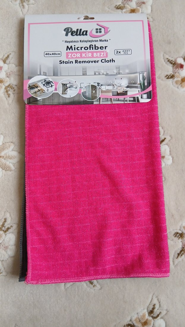 40x40 cm boyutunda, renkli baskılı pembe mikrofiber mutfak bezi. Leke çıkarıcı özelliği ile kullanışlı, çağdaş mutfaklar için uygundur. İkili set.
