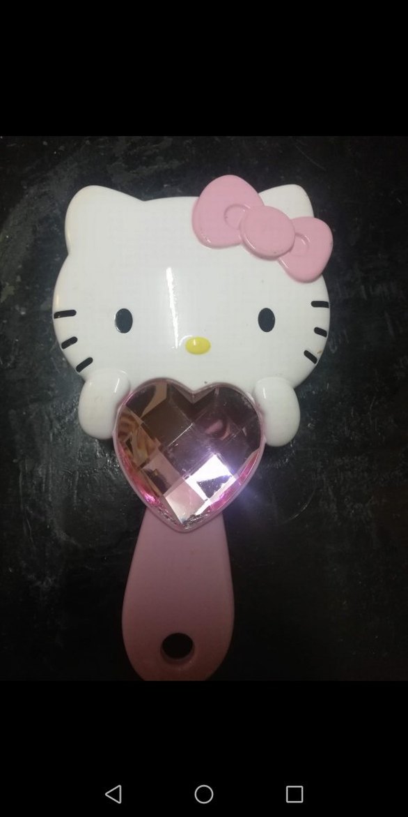 Hello Kitty figürlü, kalp tutan renkli pembe kedi tarağı.