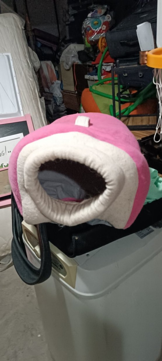 Yumuşak ve renkli pembe kedi yatağı, kediler için rahat bir dinlenme alanı sunar.