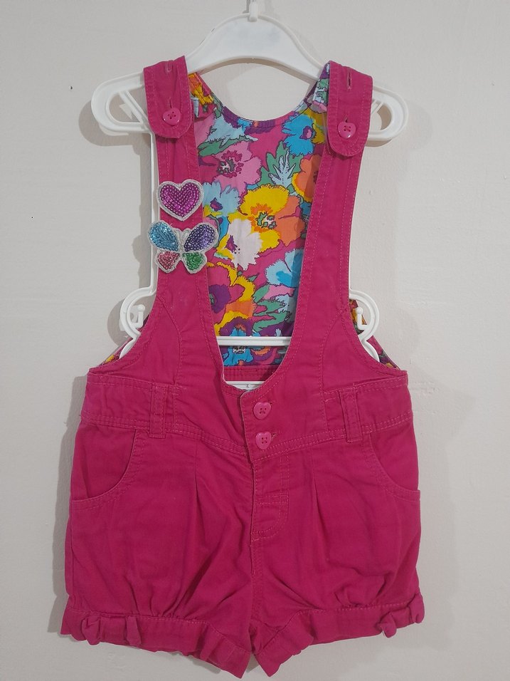 Renkli Pembe Kız Tulum, Düğmeli, Kolsuz