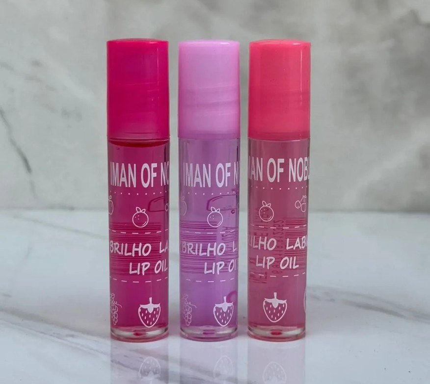 Parlak ve nemlendirici etkili renkli pembe lip gloss seti. Her tüp üzerinde meyve desenleri bulunur.