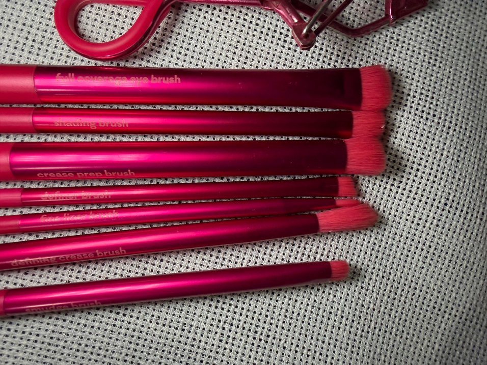 Çeşitli fırça şekil ve boyutlarında renkli pembe makyaj fırçalarından oluşan set kaş kıvırıcı Sephore marka