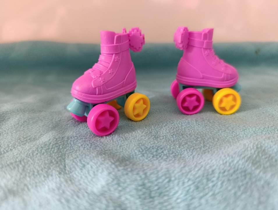 Yıldız desenli renkli tekerlekleriyle pembe mini paten oyuncak, hayal gücünü destekler.