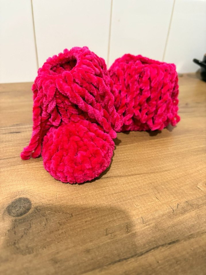 Renkli pembe örgü kız çocuk ev terliği, bağcıklı ve bohem tarzda, yumuşak dokulu ve rahat bir tasarıma sahiptir istenilen ölçüde yapılır