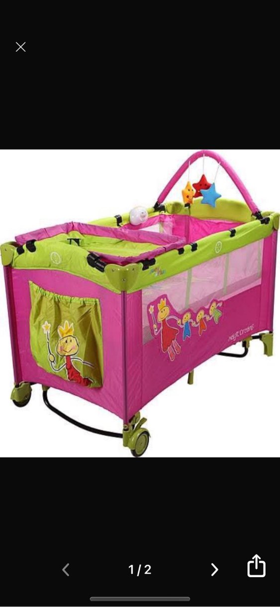 Renkli pembe oyun parkı yatağı, havalandırma için file yanlar ve asılı yıldız oyuncak barı içerir. Kolay taşınabilir tekerlekleri ve yan cepli saklama alanı vardır. Ürün sıfır kutusunda hiç kullanılmadı, YouTube da sihirli rüyalar diye videosu var inceleyebilirsiniz
