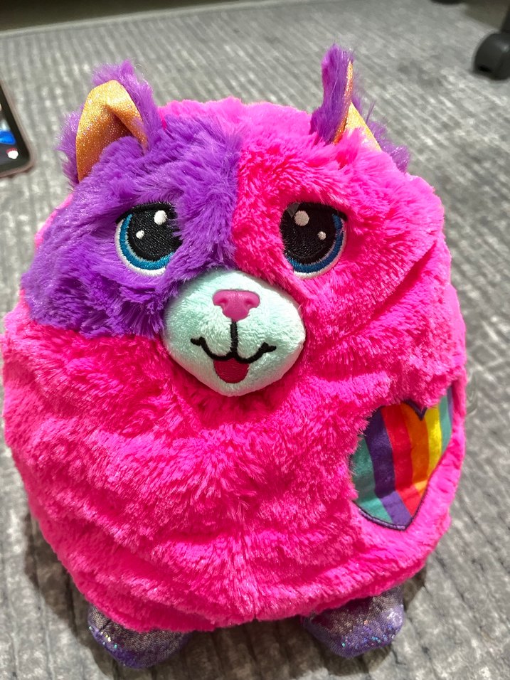 Canlı pembe renkte, yan tarafında kalp detayı olan renkli peluş oyuncak. Yumuşak ve sarılmalık. Misfittens