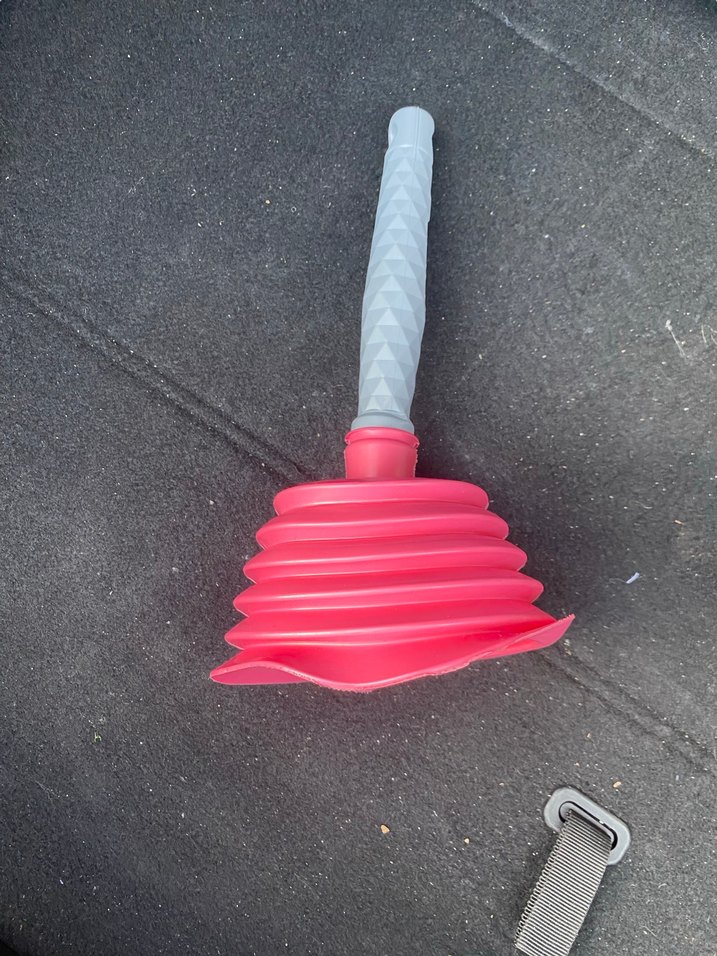 Renkli pembe pompa gider açıcı, dokulu gri sap ve esnek körük tasarımı ile tıkanıklıkları açmak için uygundur.