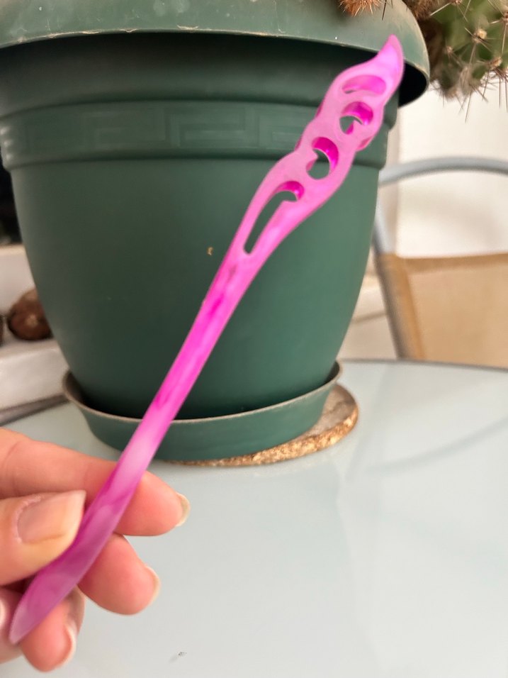 Canlı pembe renkte, kolay tutuş sağlayan özel sap tasarımlı renkli saç tokası