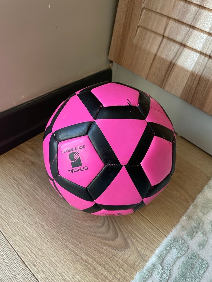 Canlı renklerde pembe ve siyah futbol topu, günlük oyunlar için uygun. ⚽