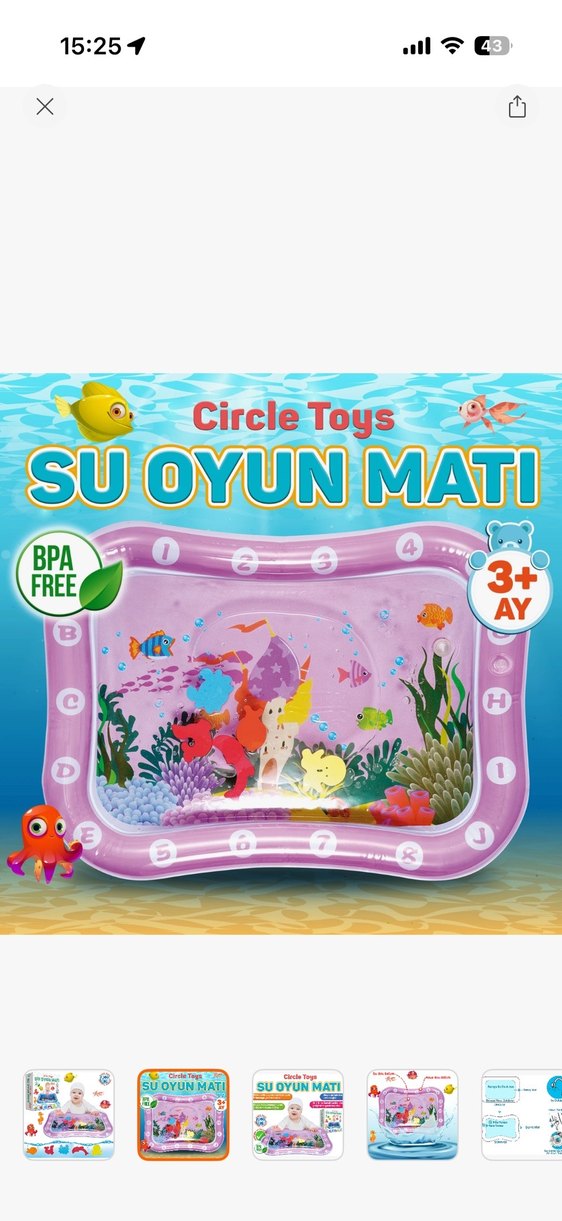 Circle Toys markalı, 3 ay ve üzeri çocuklar için BPA içermeyen renkli pembe su oyun matı, canlı denizaltı desenlerine sahiptir.
