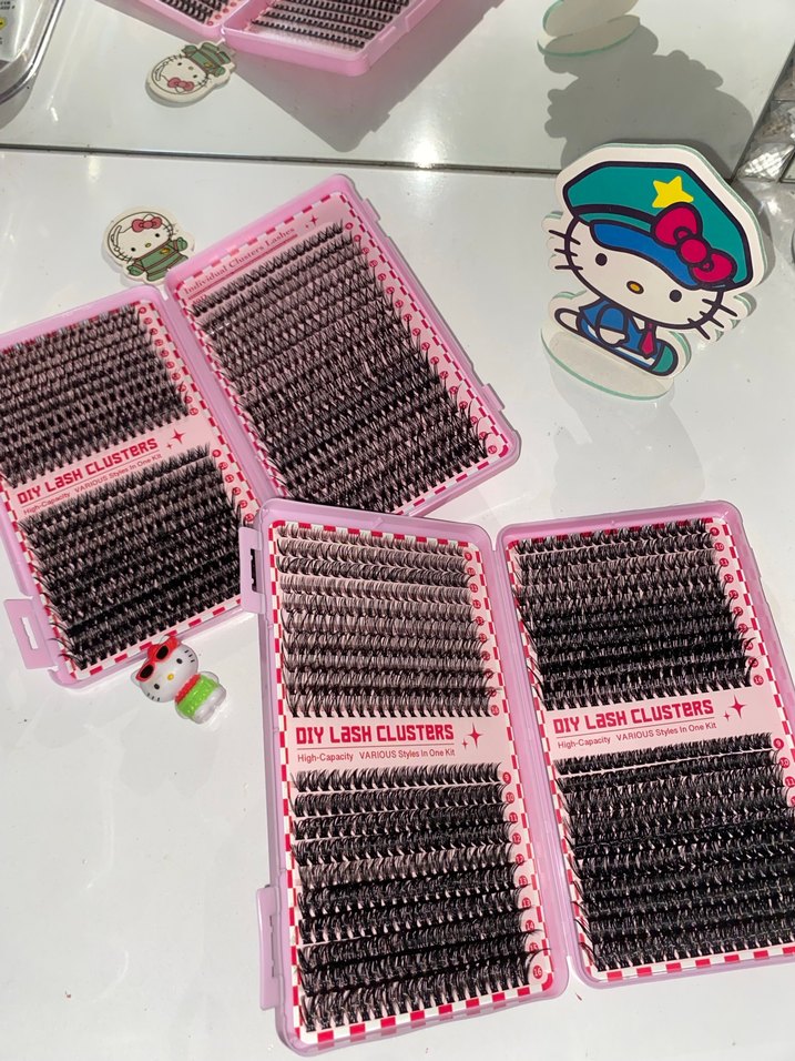 Çeşitli uygulama için farklı boylarda renkli pembe takma kirpik