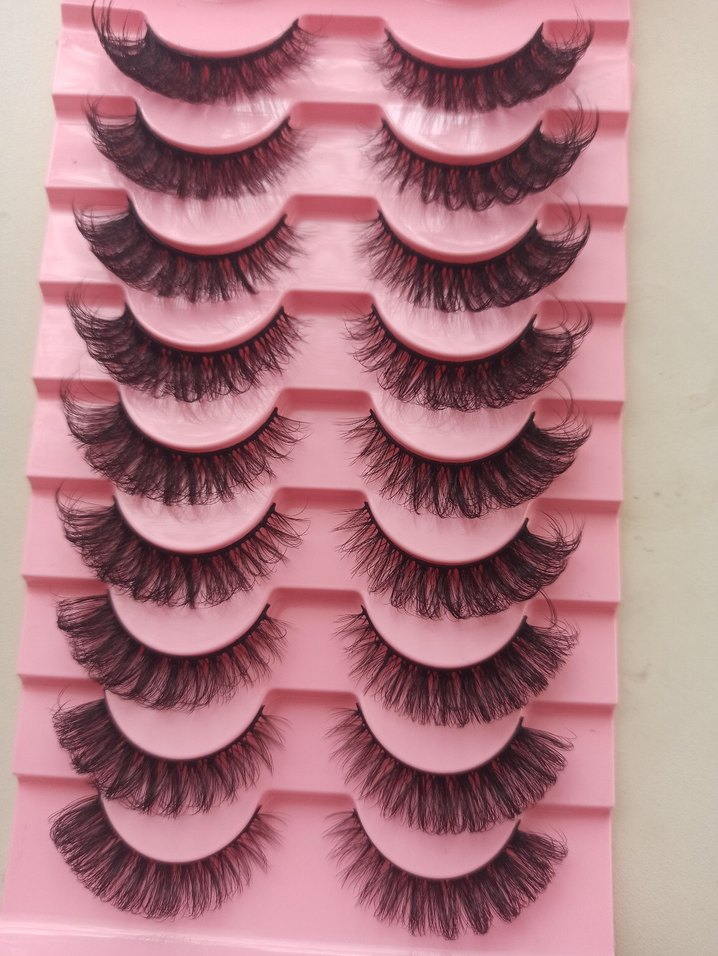Farklı stillerde makyajlar için renkli ve pembe ambalajlı takma kirpik seti. 1 ÇİFT FİYATI 100 9 ÇİFT 500