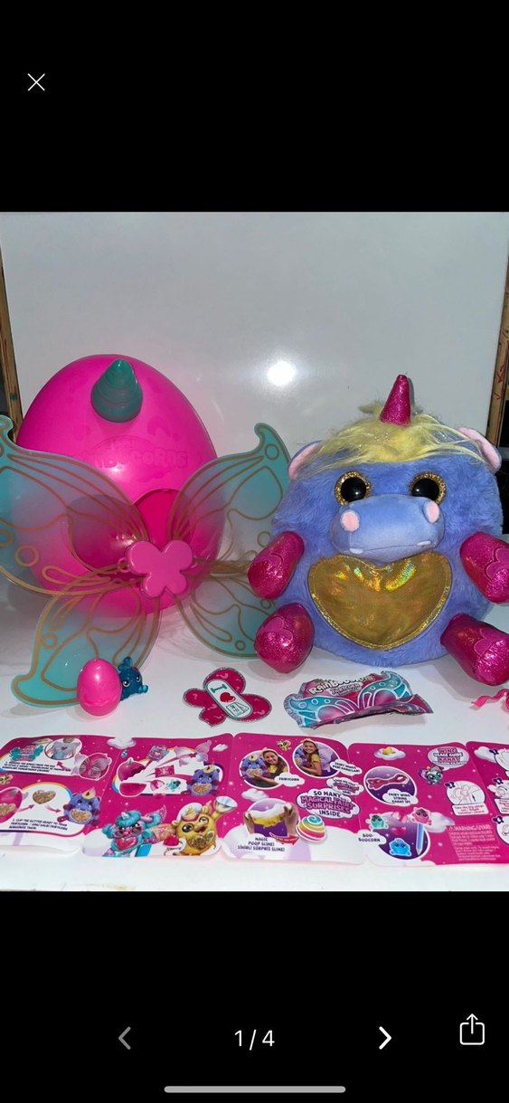 Parlak pembe detaylara sahip yumuşak unicorn peluş, saydam kanatlar ve küçük aksesuarlar içeren renkli oyuncak seti. Hayal gücünü destekler.